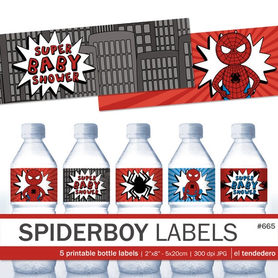 Printable spiderman water bottle labels