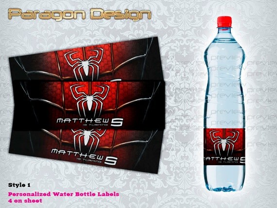 Spiderman Water Bottle Label - Super Hero Printable - Digital - Birthday Party - Personalized ...