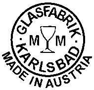 Glass Identification: Labels | Antique & Collectable Glass Encyclopaedia Italian Murano & Empoli Glass Labels Blue AVEM label, reads "AVEM, Made in Italy, Murano". Red AVEM label, reads "AVEM, Made in Italy, Murano". Red AVEM label, reads "Made in Italy, Murano". Red AVEM label with star, reads "Made in Italy, Murano". Generic Italian glass paper label. Generic Murano glass foil label. Glass Marks A - B Marks can include a number or FRANCE & lower case versions of the signature are known. The signature of A. S. Bouraine in the same style is included on figures. Buchenau Glassworks History Founded as Hilzenhutte 1705 divided in 1856 Destroyed by snow storm in 1935 Designers Ferdinand Benedikt von Poschinger (1890-1900) Richard Riemerschmid (1900- Loetz Signatures and Marks Prior to 1918 The crossed arrows mark was registered by von Spaun in 1891 and used primarily on paper labels until 1898. 1898 was the first time that the crossed arrows mark was intaglio engraved onto a piece of glass. I. Engraved Crossed Arrow Marks There are four versions of the engraved crossed arrows mark.