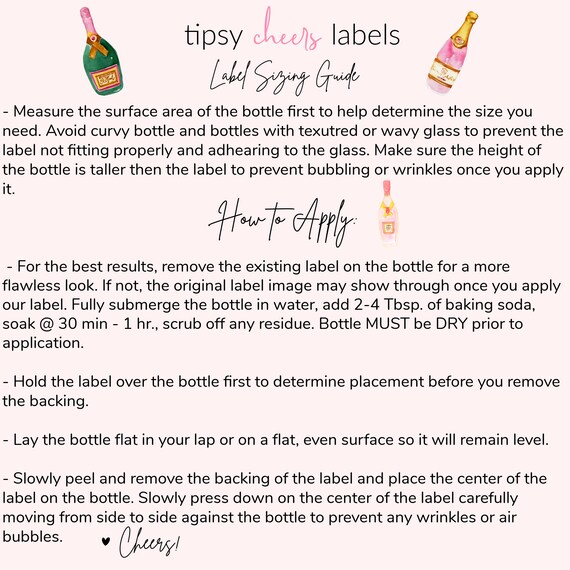 How to Apply your Labels to Prevent Bubbling - Design Studio 1. Start with a clean, dry bottle with the original label removed. 2. Center your label over the bottle and press down in the middle of the label only (keeping the sides away from the glass) 3. Starting from the middle, use your finger to smooth the label on the bottle using up and down motions. The key is to work slowly.