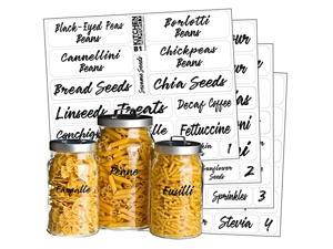 Talented Kitchen 135 Pack Pantry Storage Labels Stickers, Preprinted Water Resistant Dry Black Cursive Food Jar Label Sticker For Kitchen Organization