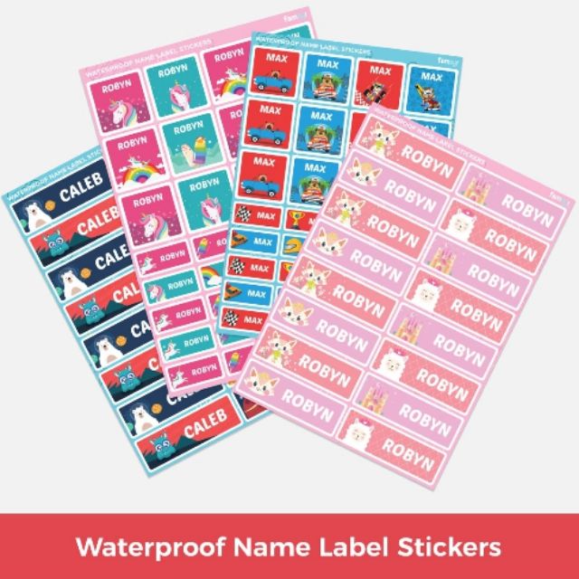 Name Labels | Kids Labels | Name Stickers - Tinyme Malaysia RM45.00 Personalised Bag Tags NAME LABELS FOR KIDS With Tinyme name labels you won't have to worry about your labels peeling or fading. Our kids labels are designed to be very durable, and they'll hold up against whatever punishment your kids subject them to.