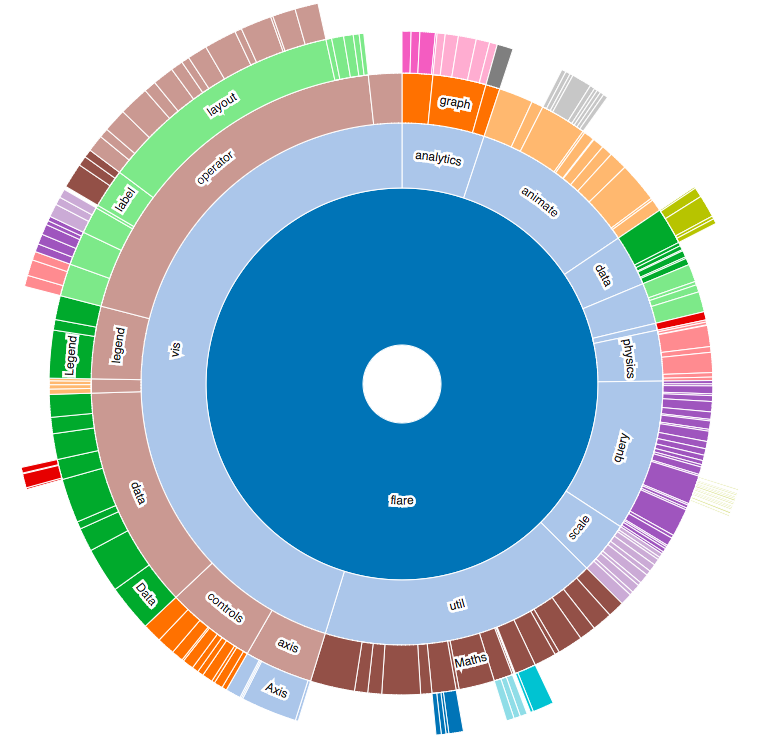 Zoomable Sunburst with Labels - bl.ocks.org Updated July 24, 2021, Zoomable Sunburst with Labels, Open, Adapted from Mike Bostock's Zoomable Sunburst to include arc labels. Click on any arc to zoom in. Click on the center circle to zoom out. Click on canvas background to reset zoom. Also packaged as a reusable component at sunburst-chart. index.html #, d3.sunburst | Reusable function to easily create sunburst ... d3.sunburst is designed as an add-on of D3 library inspired from the numerous existing sunburst examples such as this one. It follows the approach presented here, which also adopted in C3js. This site is open source. Improve this page .
